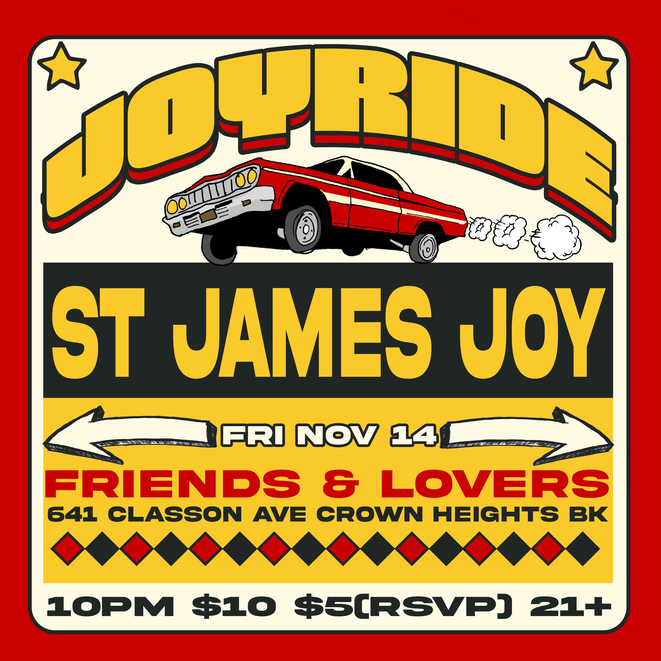 Friday, Nov. 14th, pack your bags and get ready for the journey as FnL welcomes back Saint James Joy and friends for JOY RIDE. They’re springing forward with love, peace, happiness at our beloved venue. So pull up and dance all night as they leave no stone unturned touching House, Soul, Hip-Hop, and R&B at 641 Classon for JOY RIDE on Friday night from 10PM to 4AM.