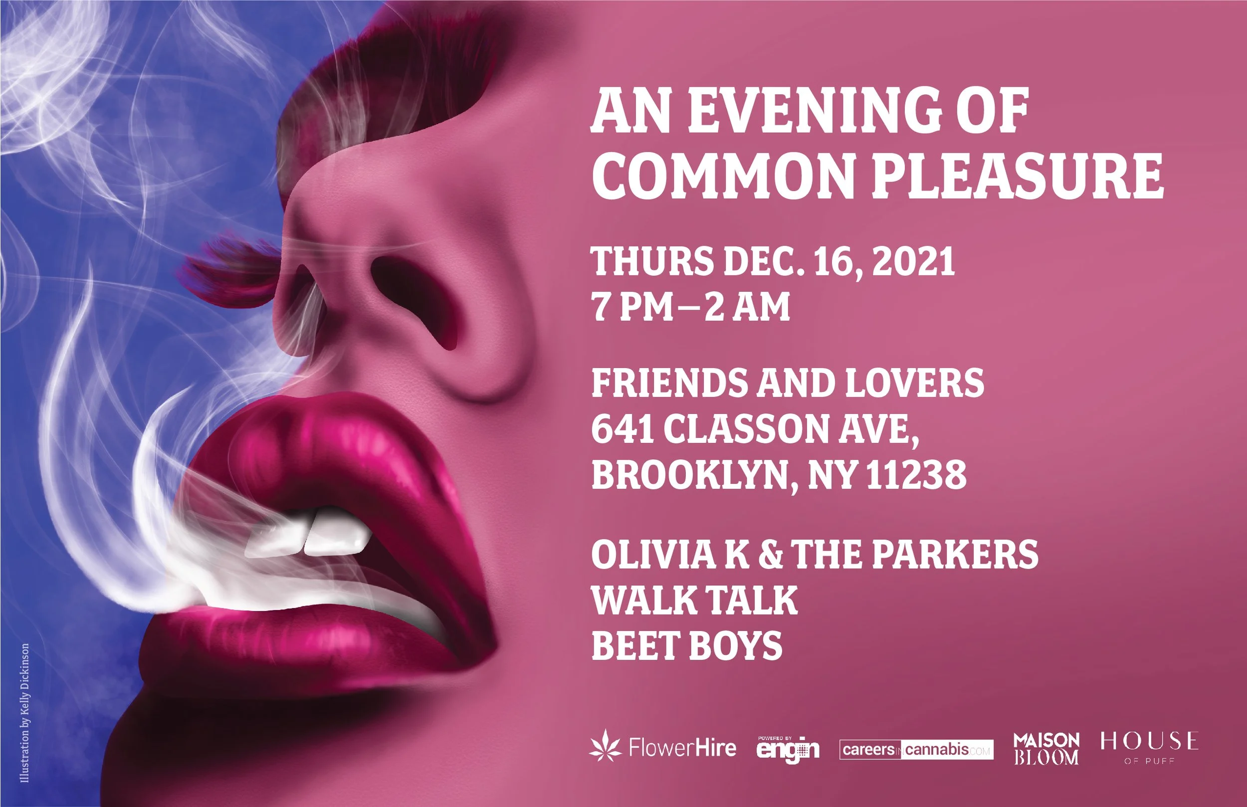 A hot wintertime cannabis networking night with DJ sets, live music (8PM-2AM), and a light show. The will feature special guests Olivia K & the Parkers, The Walk Talk, and Beet Boys. This is not your boring holiday party - so leave the ugly sweater at home and come as you are.