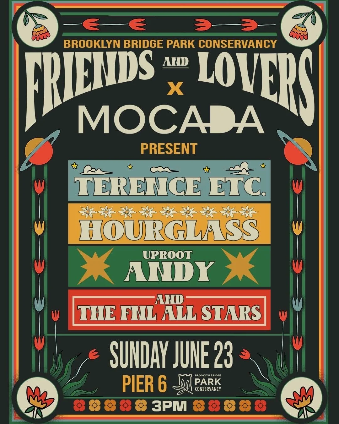 On Sunday, June 23, come celebrate Pride, Black Music Month, Immigrant Heritage, and Juneteenth weekend with Friends and Lovers, MoCADA, and Brooklyn Bridge Park Conservancy at Pier 6. It’s all happening from 3:00 PM to 9:00 PM with DJ Hourglass, Uproot Andy, and a live performance by Terence Etc of his debut full-length album, Vortex, out now on Brainfeeder Records.