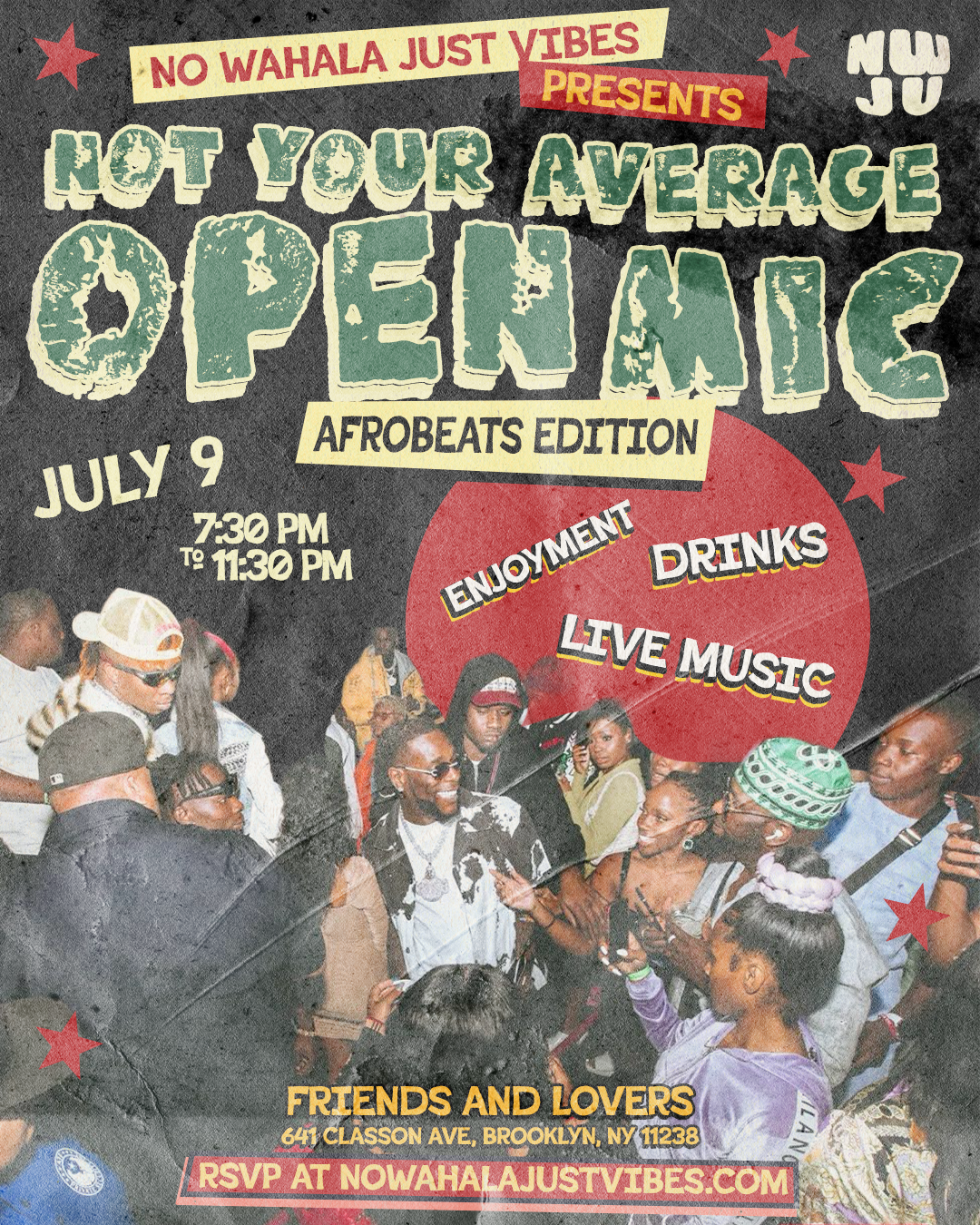 Welcome to the second edition of Not Your Average Open Mic—a night dedicated to raw talent, authentic connection, and unforgettable vibes. This month we're spotlighting Afrobeats, with a live performances alongside our host, David Foreign, showcasing a lineup of dynamic artists who embody the bold energy and expressive soul of the genre. Whether you're stepping on stage or soaking it all in from the crowd, this experience is all about amplifying creative voices and building community.