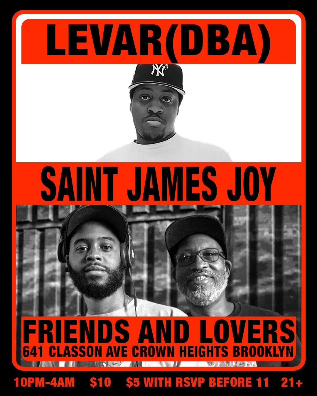 Carry on the tradition of a Brooklyn summer Saturday night, August 23rd, with two staples on the scene, Saint James Joy and Levar (DBA). Hip-Hop, House, R&B and tons of love are on the menu and that’s what will be served up for your listening and dancing pleasure. So slide through to Friends and Lovers and keep your hips in motion all night long from 10pm until late with Saint James Joy and Levar (DBA).